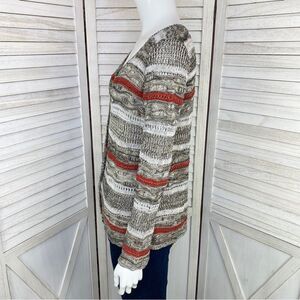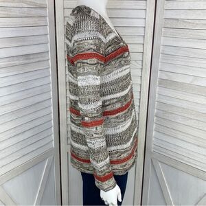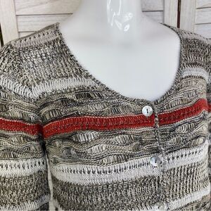 The Tog Shop Button Front Open Weave Cardigan Sweater Taupe Beige Multi Color