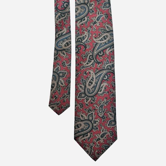The Toggery Shop San Diego Paisley Printed Silk Neck Tie England Blue Red Gold