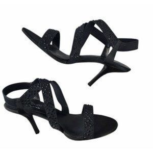 The Touch of Nina Black Heeled Slip-on Sandals Strappy Black Studs Womens 9.5