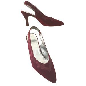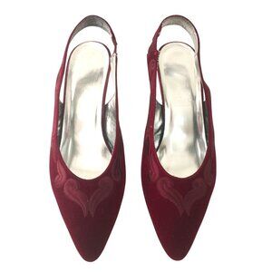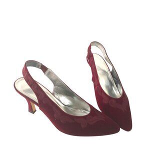 The Touch of Nina Bordeaux Velvet Slingback High Heel Pumps Shoes