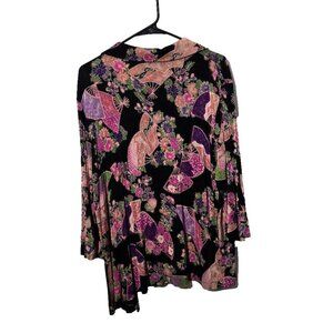 The Travel Collection Open Cardigan 1X Slinky USA Made Fans Floral Asian Themed