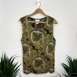The Travel Collection Plus Size Paisley Print Slinky Knit Boho Artsy Tank Top