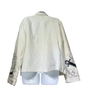 The Travel Collection White Nautical Anchor Embroidered Button Front Jacket XL