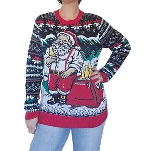The Ugly Sweater Co Ugly Christmas Sweater Santa Drinking Beer Men's Size Medium