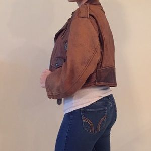 Above the waist, crop real brown leather flight jacket! Has buckles on the front sides to make it fitted. Barely worn and in great condition! Make an offer and I will negotiate‼️😁 No trades please ❌.