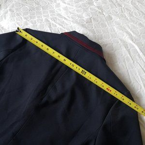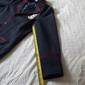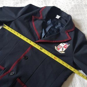 This dark navy colored blazer has maroon trim and the academy crest in the chest. Two pockets; three button closure; lightweight and lined.
