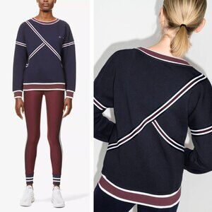 The Upside Captain Striped Cotton Contrast Jersey Sweatshirt Blue Athleisure