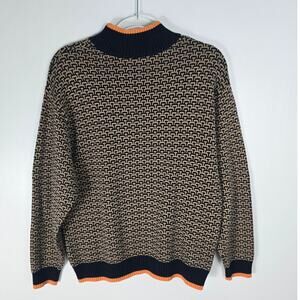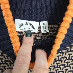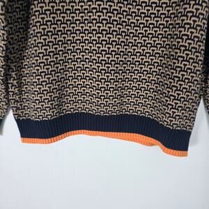 The Upside Castilla Clementine Sweater Mock Neck Geometric Pattern Navy Tan Orange Size Small