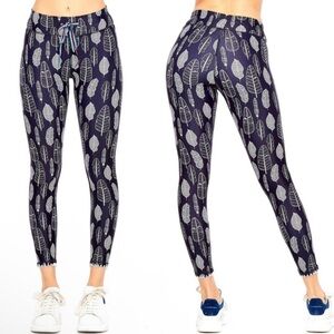 The Upside Gypsy Feather Midi Pant Cropped Drawstring Legging in Navy / White, Women’s Size 8