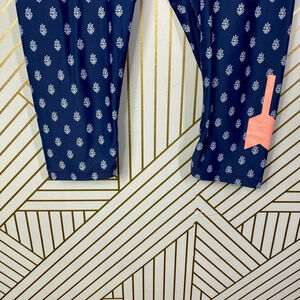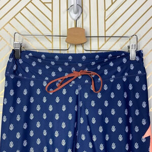 The Upside Pants Blue Floral Printed Drawstring Cropped Capri Leggings Size L