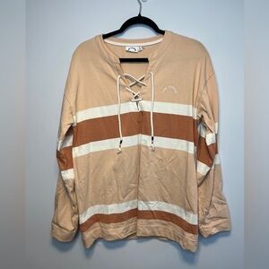 Great oversized tunic like Jersey style popover sweatshirt with lace up detail. Neutral colors are great summer pallet. No flaws. Brand sold at Revolve and Anthropologie. Rare, I couldn't find another listed.