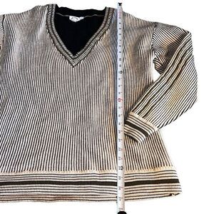 The Upside Women's Cream Deep V-Neck Striped Louie Knitted Sweater Cotton Medium