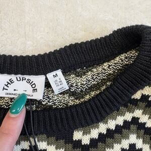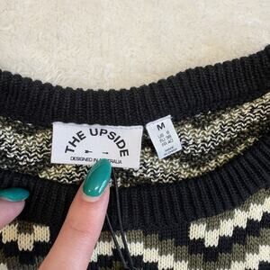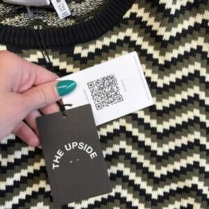 The Upside Ziggy Karlie Knit Sweater Size M Crop Green Chevron Zig Zag NWT