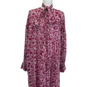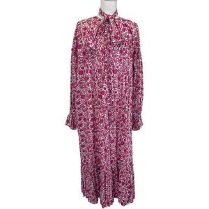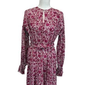 The Vampire's Wife dress in floral-print. Crew neckline; keyhole front. Long sleeves. Self-tie at waist. A-line silhouette. Flounce hem. Midi length. Slipover style. Cotton. Made in Portugal.