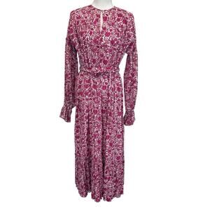 The Vampire's Wife Floral Print Long Sleeve Midi Dress In Pink Pattern One Size