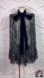 The Gothic Romance Cape. A lace cape made with shimmery metallic threads. Collar in velvet made from recycled polyester with long ties to fasten a bow upfront, defined shoulders with organza padding for statues, silhouette, and an overall ruffle trim, flounce at him for added value. Concealed hook and eye fastening at front.