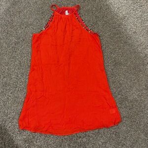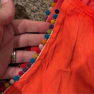 The Vanity Room Beaded & Pompom Trim Sleeveless Red Sz Medium