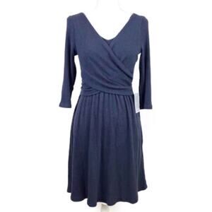 The Vanity Room Small Navy Ribbed Wrap Dress NWT