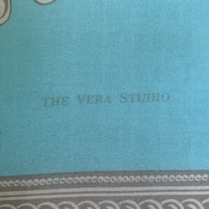 The Vera studio, vintage silk floral scarf square tan and turquoise