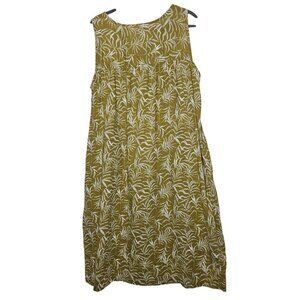The Vermont Country Store Sleeveless Olive Leaf Print Midi Dress M Cotton Casual