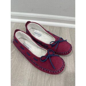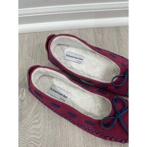 The Vermont Country Store Slippers Womens Moccasin Fleece Lined Pink Rubber 9.5