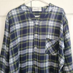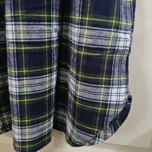 Excellent, like new condition. Super soft cotton flannel with front button top. Below knee length. Unisex. Green/blue plaid with yellow accents.