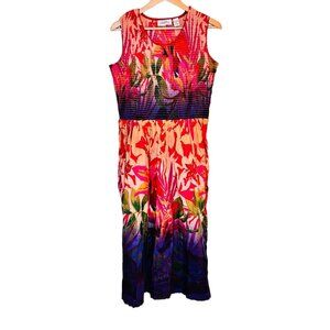 The Vermont Country Store Womens Dress Sz Small Burnout Floral Smocked Midi