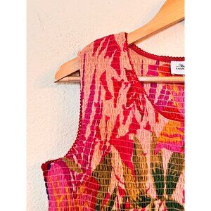 • Style Tags: boho, bohemian, smocked, cottagecore, peasant, midi, maxi, floral, mixed media, sleeveless, lagenlook, beachy, festival, gypsy, modest, sundress, hippie, travel, oversized, sundress, bright, colorful