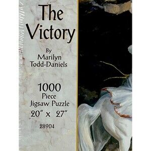 This Fantasy Jigsaw Puzzle will entertain and challenge with 1000 pieces. As a manufacturer sealed puzzle it offers a complete experience from Suns Out and was Made in the USA. The Dragon Slayer on a White Stead piercing the Fire Breathing Dragon is a 20x27 inch rendition of The Victory by Marilyn Todd Daniels.