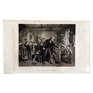 The Village School House And Headmaster Steel Engraving 1859 Victorian Art DWY5C