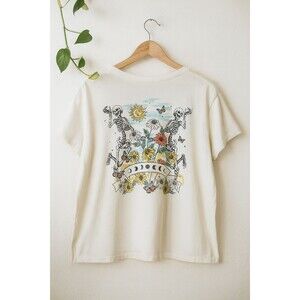 Trendy graphic tee by The Vinyl Icons featuring No Bad Days front print and celestial skeleton floral design on the back. Soft cotton fabric with relaxed fit and boho vibe aesthetic. Perfect for everyday wear or music festivals. Excellent pre-owned condition see photos for details.