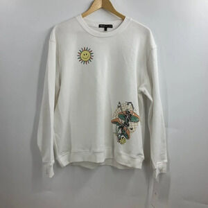 The Vinyl Icons Women's Skeleton Mushroom Graphic Sweatshirt In White SZ S NWT