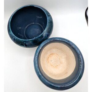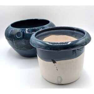 The Violet Pot Vintage 2 Piece Blue Glaze Ceramic African Violet Planter 8.5"