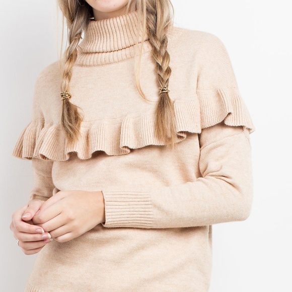 KEEP WARM & SUPER SOFT KNITTED SWEATER FEATURING TURTLE NECK RUFFLE OVERLAY SWEATER PULL OVER