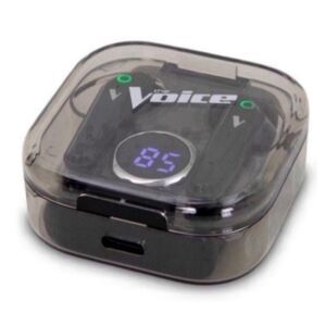 The Voice Duo True Wireless Stereo Earbuds with Mic, Charging Case with LCD Screen, Bluetooth Connect, Auto-Pairing, Use with Siri or Google Assistant, iOS or Android Compatible (Black)
