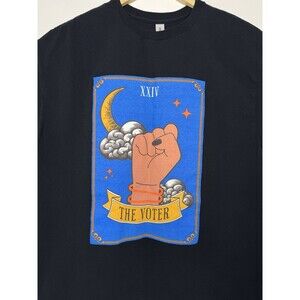 Excellent condition Gildan shirt that is pre-owned only because it was washed once (never worn!) This design was made by a local artist from Minnesota to express equality and spirituality within a tarot design on the importance of voting for your rights now and going forward. Very beautiful design with vibrant colors and expression. This fits as a men's size XL, but is a unisex design. Please see photos for exact measurements and condition!