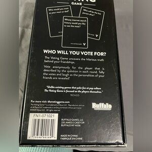 Fun party game. “Find out who your friends are”. Everything is included. Instructions, original packaging, 150 question cards, 90 voting cards and 1-10 cards.