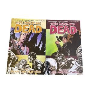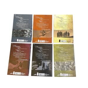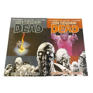 Up for sale is a set of six trade paperback volumes from Robert Kirkman’s The Walking Dead series — Volumes 9 (“Here We Remain”), 10 (“What We Become”), 11 (“Fear The Hunters”), 12 (“Life Among Them”), 13 (“Too Far Gone”), and 14 (“No Way Out”). These collect issues that carry the storyline through some very dramatic developments in the undead apocalypse.