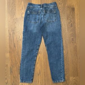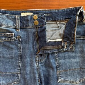 Classic mid-rise jeans from Pilcro at Anthropologie, relaxed from hip through thigh with subtle taper. Zip and button front closure, front and back patch pockets, vertical patches along inner legs and subtle outer leg darts for comfort and flexibility. Super soft denim with 1% Elastane. Machine wash.