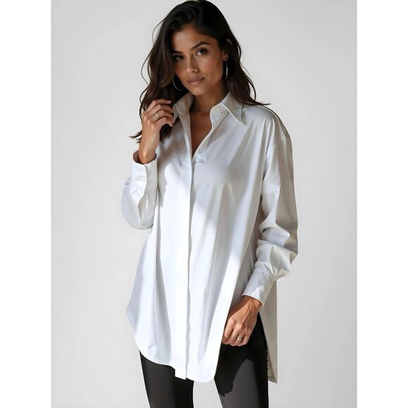 The Warmy Oversized Lapel Shirt Dress White Tunic Top Women’s Size M