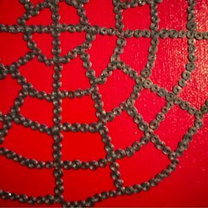 “The Web” is multimedia art work. I made this work by hand twisting each piece wire and placing them in this pattern. It is on a red background with a black frame. This item is 11 1/2” x 13” including the frame. It has the hardware on the back for easy hanging.