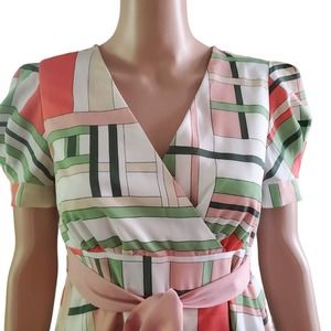 The Webster Miami Sz S Petite Geometric Faux Wrap Puff Sleeve Short Dress Coquette or Academia