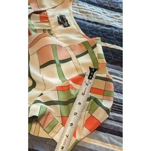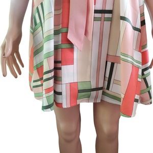 Take your coquette to the max with this beautiful geometric print in pink, green, cream with a pink front tie