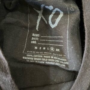 Used The Weekend Black long sleeve shirt with a bold graphic and 'MADNESS' text on the sleeve. Concert bought.