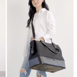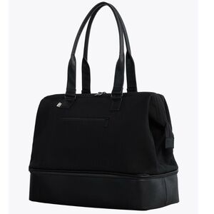 Material: Poly canvas body, vegan leather trim, 100% poly lining, nylon zipper, and zinc alloy hardware.