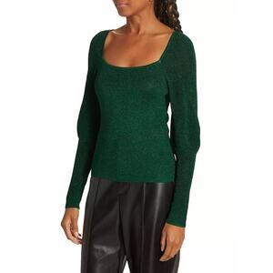 The Westside Collection by Sari Sloane Wren Metallic Rib Knit Sweater Evergreen XS