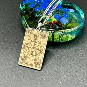 The Wheel of Fortune / Fate Stainless Steel Tarot Pendant and Necklace #860