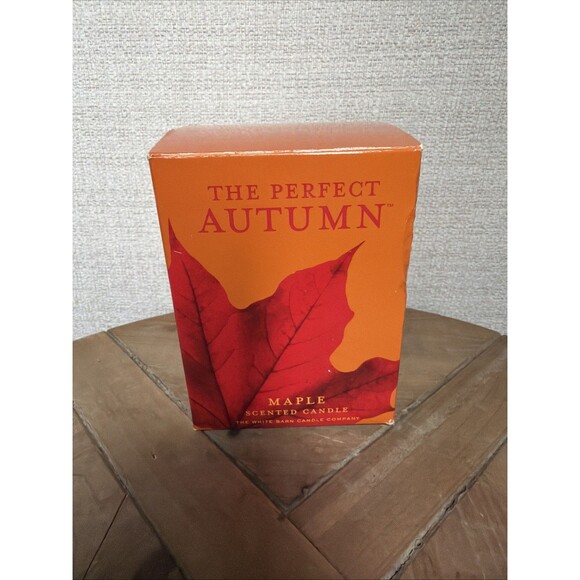 The White Barn Candle Company 10 oz The Perfect Autumn Maple Scented Candle. The candle is infused with the scent of the perfect autumn, creating a warm and inviting atmosphere. It is a high-quality product from the reputable brand White Barn, making it a perfect addition to any home decor for the autumn season. It does have bubbling at the top but should go away once lit, never been lit! Great gift idea for your candle lover!