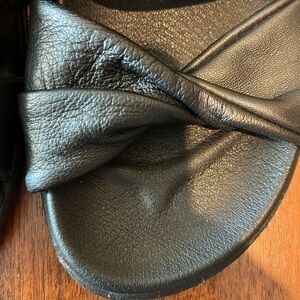 The White Co. London slides sandals black leather Double twist top Size 37 6