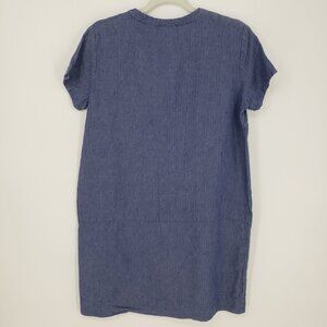 The White Company Linen Shift Dress 8 Short Sleeves Pockets Chambray Blue